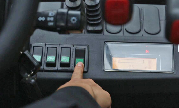 マスト傾斜角度は前方15°から後方15°まで、オフロードでの積み下ろしや運搬に最適。